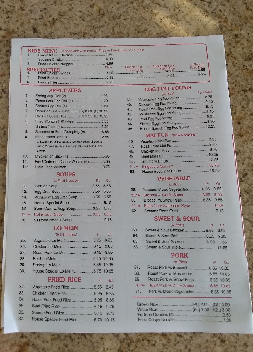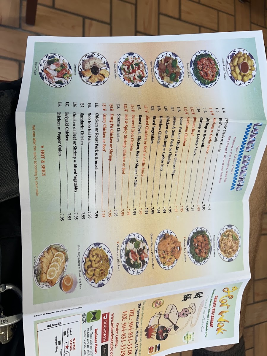 The menu at Hot Wok offers a wide variety of dishes catering to different tastes, from classic favorites to chef's specialties. For a satisfying start, try the Shrimp Toast or Chicken On A Stick (4), or perhaps indulge in the Pu Pu Platter For Two. The Sweet & Sour Shrimp and Hot & Spicy Shrimp are standout items in the Beef & Seafood section, each bringing a delightful blend of flavors. For something more hearty, the General Tso's Chicken and Sesame Chicken from the Chef's Specialties are both flavorful options. Vegetarians will appreciate the Shrimp With Mixed Vegetables (Diet) and the Beans With Mixed Vegetables (Diet) from the Diet Menu, while the Beef With Broccoli and Shrimp With Snow Peas provide a mix of savory and light choices. If you’re craving comfort, the Roast Pork Lo Mein and Shrimp Fried Rice are great choices from the Rice & Noodles section. The Fried Chicken Nuggets and Egg Foo Young are also popular from the Favorites & Specialties. Don't forget to pair your meal with a refreshing beverage like Pineapple Fanta or Minute Maid Lemonade. If you're in the mood for something smaller, try the Fortune Cookies (4) or Fried Crispy Noodles as a side. Finally, enjoy a warm bowl of House Special Soup or Wonton Soup to complement your meal.